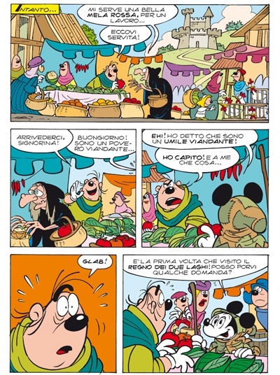 E così Cronache del regno dei due laghi si rivela essere una gustosa interpretazione di Tito del fantasy, nel quale abbiamo Topolino nei panni di un re che non vuole più fare il re, Manetta suo consigliere, Pippo comandante dell'esercito, un Gamba dubbioso a capo dei barbari invasori e così via. Un gioiellino per i tempi comici espressi, supportati egregiamente dalla Ziche. Il finale dell'ultima puntata, poi, credo sia una delle cose più geniali nel fumetto Disney da anni a questa parte. Applausi a scena aperta.